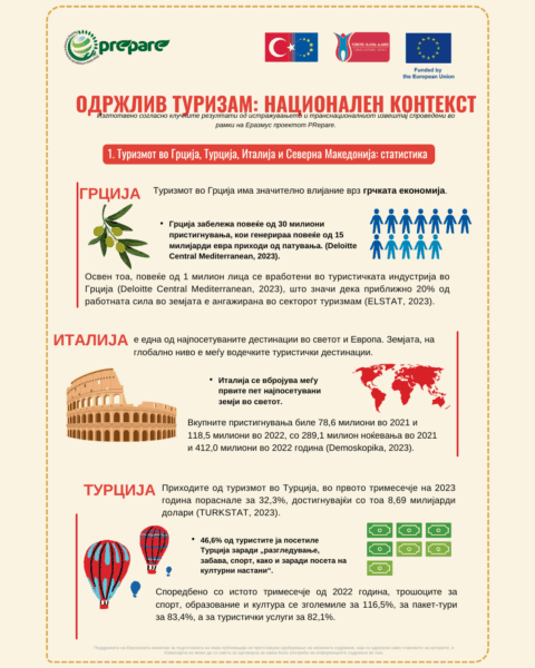 Во текот на 2023 година, во рамки на PRepare проектот, заедно со партнерите од Турција, Грција и Италија, спроведовме серија од истражувачки активности кои имаа за цел да ја утврдат состојата со секторот туризам во четирите држави, како и нивото на знаење и познавања од клучните теми за одржливост и туризам помеѓу граѓаните и осоено […]
